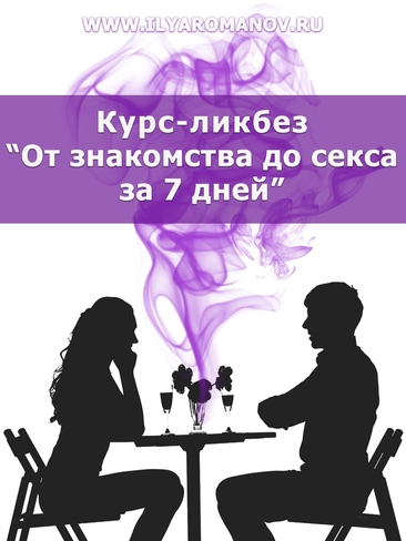 Курс-ликбез "От знакомства до секса за 7 дней" приван дать тебе чёткое понимание, как выстраивается процесс общения с девушкой с момента, когда ты только захотел с ней познакомиться, и до момента, когда ты после секса с ней решаешь, хочешь ли ты с ней продолжения в виде отношений или это будет просто легкий формат!