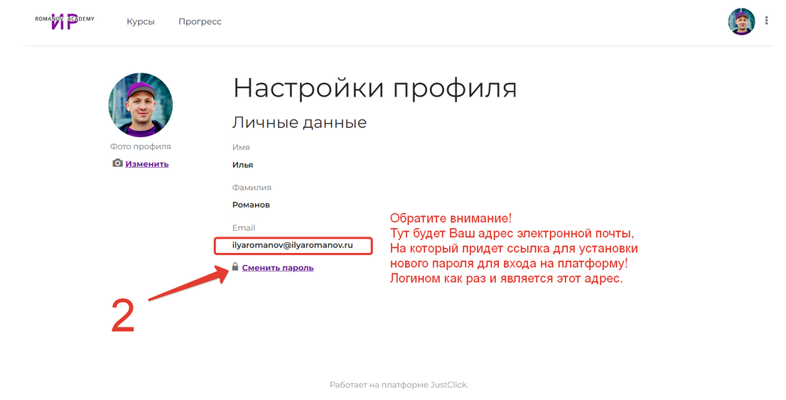 мы настоятельно рекомендуем сразу задать свой собственный пароль, чтобы в дальнейшем без проблем заходить на платформу и получать доступ к продуктам!