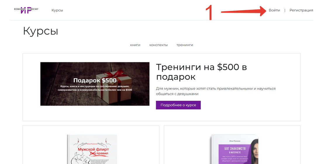 https://academy.ilyaromanov.ru/lmsЕсли Вы не авторизованы на платформе, то при переходе по ссылке Вы попадёте на такую страницу: Это главная страница платформы. Набор курсов и обложки могут меняться, но принципиально это выглядит так.